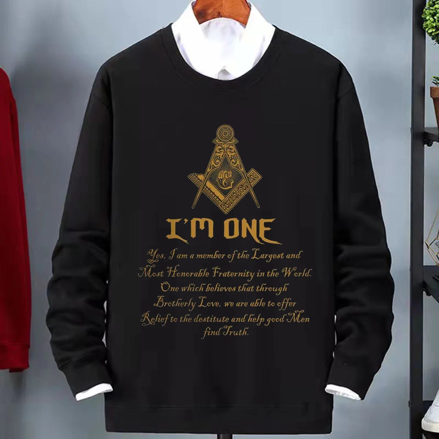 Embrace your Masonic identity with the Master Mason Blue Lodge Sweatshirt featuring the powerful "I Am One" printed design. Crafted from comfortable cotton, this Sweatshirt is not just an article of clothing; it's a statement of your Masonic allegiance. Stay cozy and showcase your pride in the Masonic fraternity with this stylish and meaningful Sweatshirt. Wear it with confidence, and let the world know you are part of something extraordinary.